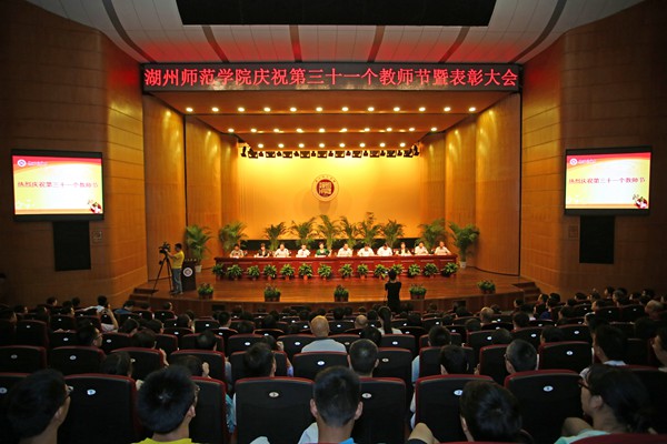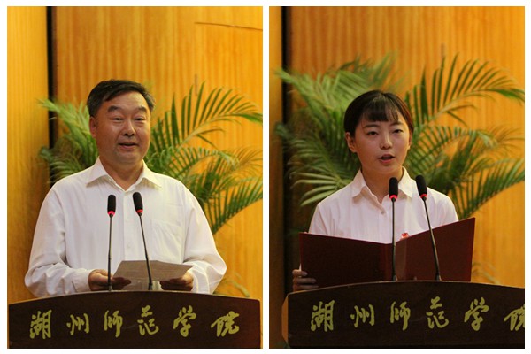 裘东耀代表市委市政府和全市人民向受到表彰的优秀教师和教育工作者表示热烈的祝贺,向全校教师致以节日的问候和崇高的敬意。他指出,湖州师院作为湖州本土成长起来的高校,目前已经成为具有培养本科和硕士专业学位研究生层次学校,是国家“卓越医生”和“卓越农林人才”教育培养计划项目试点高校、浙江省普通高校招生第一批录取学校,更可贵的是,湖州师院始终将地方经济发展作为重要任务,发挥人才优势,加强合作交流,在助推国企产业转型升级、生态文明、美丽乡村建设等方面做出了重要贡献。希望湖州师院认真学习贯彻湖州市委七届八次全会精神,围绕中心、服务大局,创新实干,主动作为,不断提高教育、教学水平,在全市经济社会发展中发挥更大的作用。