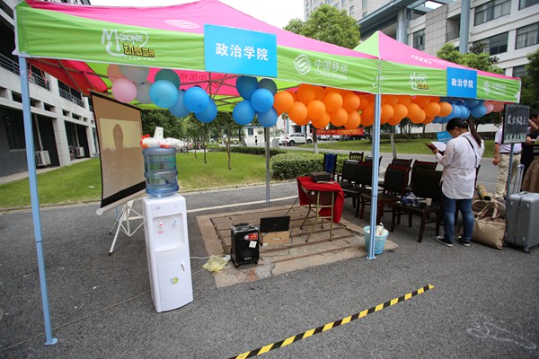 为迎接生科“小萌芽”,生命科学学院的科技创新协会准备了精彩的“航模拉烟”表演。航模在生命科学院大楼前的迎新点上空以盘旋的方式拉出一条彩烟,机体在空中逆时针360度翻转后低空飞行较长距离,航模又继续垂直爬升到更高空,机体转而向下俯冲,安全降落停机点,引起全场阵阵掌声。此外学长学姐们还进行了其他航模、无人机的表演。生科院党委副书记沈健热切表示:“希望通过这种活动激发大学生科技创新的热情,今后生科院同样会重视学生全面发展,这也是师生、家长的共同心愿。”贴心的学长学姐还准备了花茶和矿泉水,为风尘仆仆赶来报到注册的新生和家长们送去一份清凉。