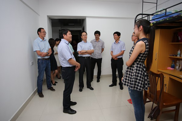 每走进一间寝室,校领导都耐心细致地和同学们沟通交流,亲切地询问同学们 “你们都是来自哪里?”“刚到学校接触老师同学,感觉能适应吗?”通过认真听取同学们的心声,拉近了与同学们的距离,让他们倍感家的温暖。“校领导亲自来宿舍看我们,真是意外的惊喜,张校长给我的感觉就像自己长辈一样,很亲切很关心我们。”住在东校区31幢材料化学专业的新生黄羽佳同学兴奋地说。
