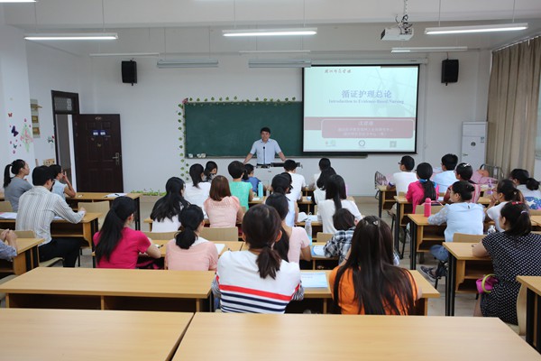 9月14日上午,校长张立钦一行看望慰问护理学专业研一新生,走进了他们的入学第一课——循证护理。