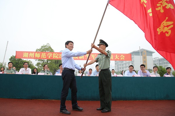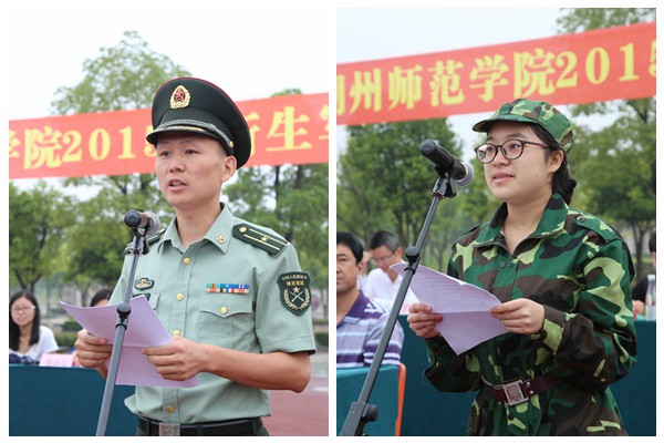 严红辉代表承训部队讲话,希望同学们勇于吃苦、严守纪律、刻苦训练,以顽强的毅力展现当代大学生的蓬勃朝气和奋发向上的精神风貌。他要求承训教官精心组织、大胆管理、科学实训、严格要求、率先垂范,确保军训安全与质量,以优异的成绩、优良的作风和崭新的风貌,向湖师院的领导和老师们交上一份满意的答卷。2015级新生陈少清代表军训学生做了表态发言。