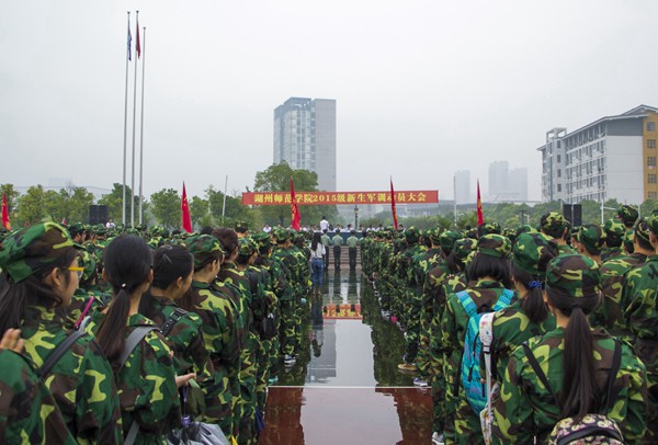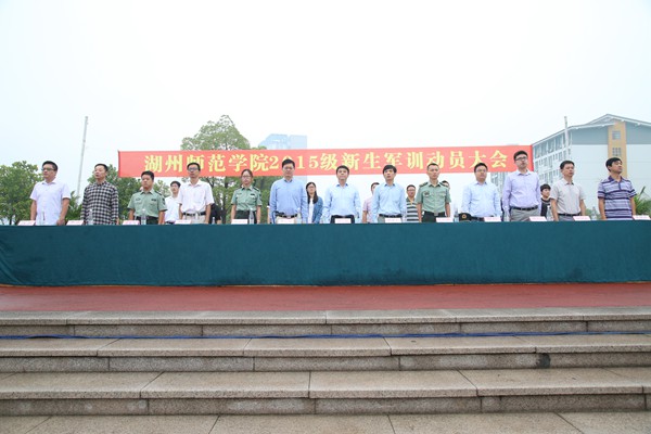 9月15日上午,我校4500多名新生身着统一的军训服整齐列队在东校区长兴广场,参加2015级新生军训动员大会。校长张立钦、党委副书记黄建平、副校长蒋云良、军训团团长73027部队严红辉出席,校军训领导小组成员、承训部队教官参加了动员会。