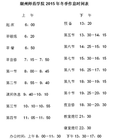 根据学校有关规定,从10月8日(星期四)起实行冬季作息时间表,请遵照执行。