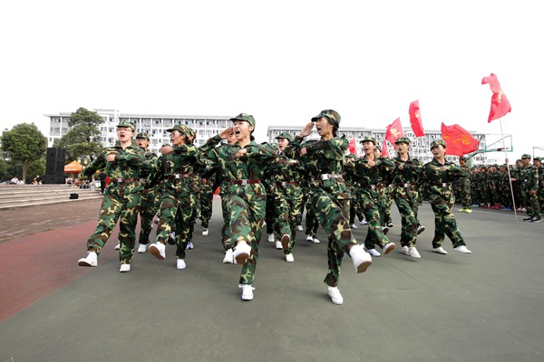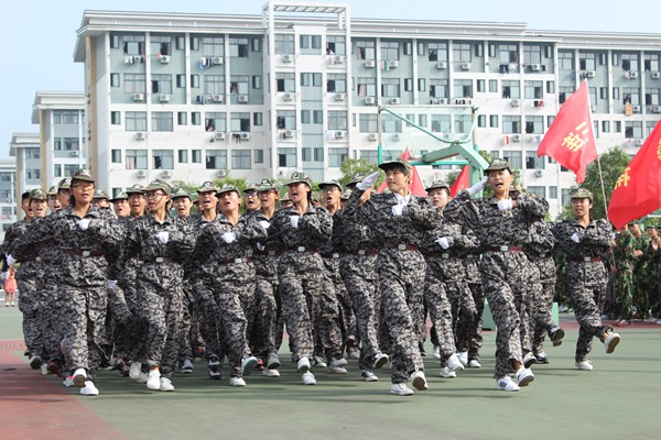 随后,2015级新生军训总结表彰大会在全体参训同学齐唱的国歌声中拉开帷幕。各学院方队统一着装,英姿飒爽,迈着整齐的步伐昂首挺胸接受检阅,展示了我校学子积极向上、奋发进取的精神面貌。