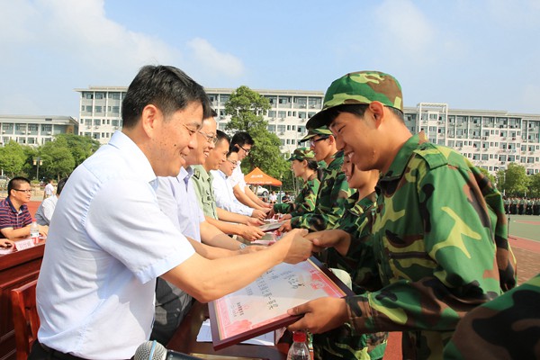 会议对军训期间各类奖项的获奖单位及获奖人员进行了表彰,商学院、文学院、教师教育学院、二营一连、二营五连等五个单位被授予“军训工作先进集体”荣誉称号;政治学院、教师教育学院、外国语学院被授予“军训内务整理优胜学院”荣誉称号,二营一连、二营五连被授予“军训内务整理优胜连”荣誉称号;一营一连一排等九个方队在军训队列会操比赛中分获一、二、三等奖;26幢105等234间宿舍被评为“文明宿舍”; 贾云钊等447人被授予“军训先进个人”荣誉称号;欧丽君等35位同学在叠被子比赛中分获一、二、三等奖。