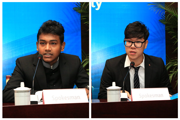 来自韩国的学生代表崔成镐表示,一定会尽自己最大的努力,怀着一颗积极向上的心去努力学习知识和中国文化。“湖州师范学院为我们提供了一个如此优越的环境,我们更应该努力学习,不要辜负家乡和老师对我们的期望。”来自孟加拉的一帆同学动情地说道。