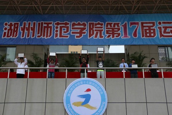 在热烈的掌声与欢呼声中,刘剑虹宣布湖州师范学院第十七届运动会闭幕。