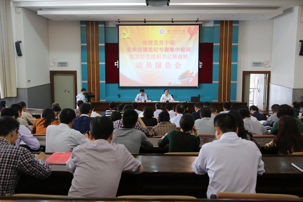 10月26日,学校处级党员干部党章党规党纪专题集中轮训班暨基层党组织书记集中轮训班开班。校党委书记刘剑虹作动员讲话,省委党校刘勇博士作专题辅导报告。党委副书记黄建平,党委委员、组织部长何小青,党委委员、教务处长马志和出席,全体处级党员干部、基层党支部书记参加。报告会由黄建平主持。