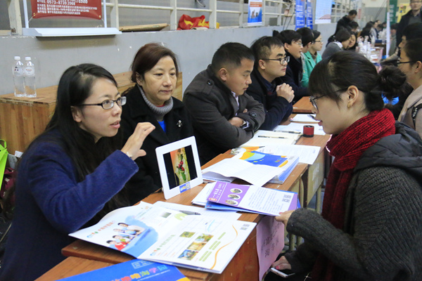 据悉,本次招聘会由我校与浙江省高校毕业生就业指导服务中心、湖州市人才市场管理中心联合举办。学校在一个月之前启动这项工作,省、市和我校多渠道宣传发动,来自省内杭州、宁波、嘉兴地区企业单位比去年有较明显增加,参加招聘会现场的不仅是2016届毕业生,还有我校大三、大二甚至大一学生,特别是工学院实施“签到制”,要求各年级学生都来现场了解用人单位对专业人才的要求,有利于学生有目的学习、更主动学习。