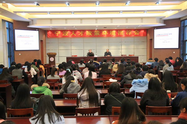 下午,宁波市人社局还在我校举办了宁波人才政策环境推荐会,并与参会学生进行了交流。