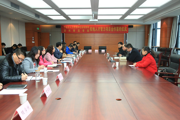 12月9日上午,宁波市人力资源和社会保障局人才开发处调研员郭旭东,宁波市人才服务中心副主任郭涛,宁波市人才服务中心交流部部长徐炬磊和宁波市人才服务中心命题部副经理潘丽娟一行来校,与我校正式签订“校地人才智力项目合作协议”。校党委副书记杨柳出席,教务处、招生就业处、学生处和各二级学院相关负责人参加了签约仪式。