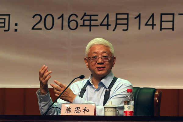 4月14日下午,复旦大学教授、博士生导师陈思和做客我校胡瑗大讲堂,与现场师生畅谈巴金晚年的生活与代表作《随想录》,共同感受名师心中的大师。陈思和娓娓道来关于巴金的故事,引起听众的感慨与反思。讲座由校党委副书记黄建平主持。
