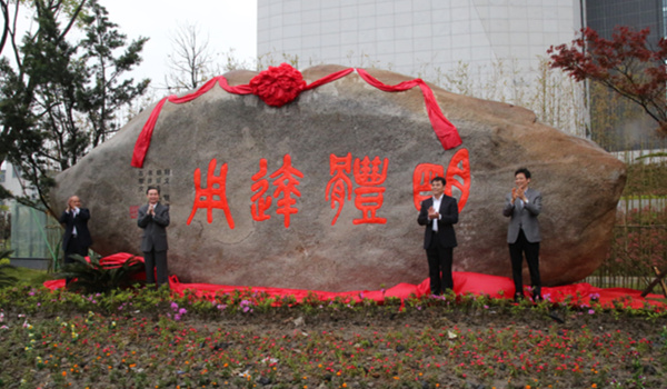 仪式上,刘剑虹、张立钦、蔡清江、胡璋剑共同为校训石揭幕。