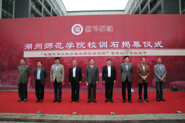 4月20日是我校校庆日,我校在东校区隆重举行校训石揭幕仪式。党委书记刘剑虹,校长张立钦,党委副书记黄建平,副校长蒋云良、陆永良、叶金云、沈建民,纪委书记朱鸿,原湖州师范专科学校党委书记蔡清江,湖州师范学院校务委员会常务副主任、原湖州师范学院校长胡璋剑出席,各学院党委(总支)书记、副书记,各职能部门负责人,全体辅导员,学院师生代表等千余人参加揭幕仪式。仪式由党委副书记黄建平主持。