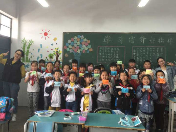 为献礼湖师院校庆节,寄托对湖师院的美好祝愿,4月20日下午,商学院理财协会、DIY社、舞蹈俱乐部的大学生志愿者来到长兴县林城镇,结对帮扶林城小学开展第二课堂的课程建设,开展主题为“承百年积淀 谱母校华章”的寄语活动。