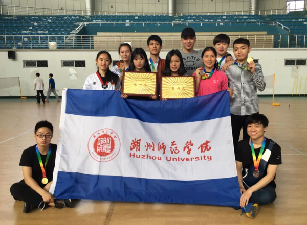 4月17日-22日,浙江省第一届大学生跆拳道公开赛在浙江万里学院体育馆落下帷幕。我校跆拳道队在文善恬教练的带领下喜获4金、1银、2铜,并获得男子团体总分第一、女子团体总分第四的好成绩。