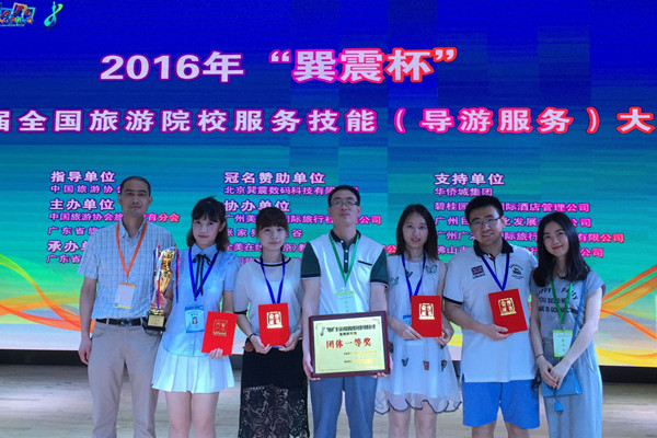 2016年5月12日,由中国旅游协会旅游教育分会和广东省旅游局联合主办的“巽震杯”第八届全国旅游院校服务技能(导游服务)大赛在广东省旅游学校举行。我校师生从容应对、力挫群雄,在历时3天的激烈角逐中,喜获一等奖1项,三等奖2项,优胜奖1项,以及团体一等奖的好成绩。