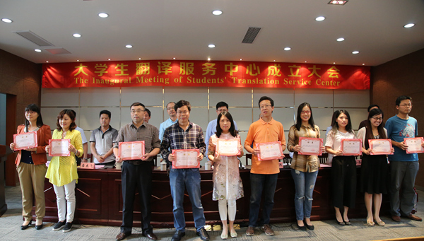 会上,蒋云良为大学生翻译服务中心揭牌,并为翻译服务中心指导老师颁发了聘书。