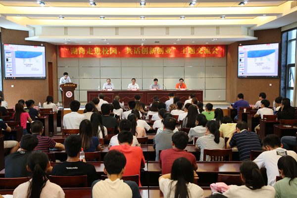 6月17日下午,杭州市湖州商会会长、德信控股集团有限公司董事长胡一平先生,杭州市湖州商会副会长兼秘书长、富尔顿中国有限公司(美国)执行总裁陈健先生携杭州市湖州商会一行13人来校,与师生代表共话创新创业。校党委副书记蒋云良出席,校对外联络发展处、招生就业处等相关职能部门负责人,各二级学院学生工作副书记、辅导员、创业学生代表近170人参加了本次交流会。