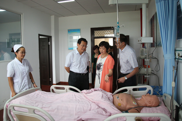 裘东耀还热情地与优秀教师代表们一一握手,关切询问了老师们的工作和身体情况,并与大家合影留念。随后,裘东耀一行还走访参观了医学院·护理学院湖州市应急救护学院、护理技能训练室、高仿真模拟训练室,现场观看了部分实验仪器设备的运行情况。