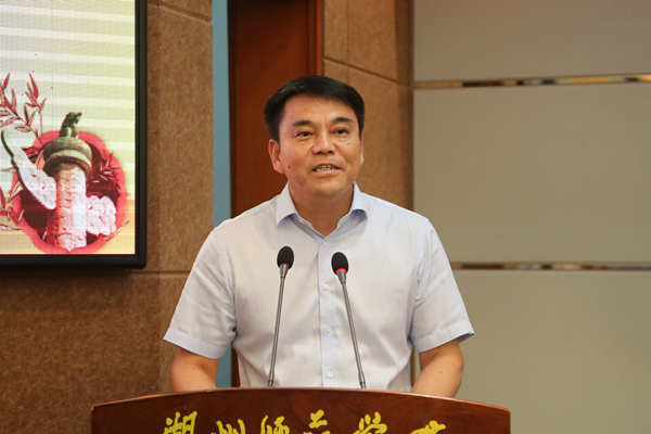 2016年省高校优秀教师、校“陆增镛教师奖”获奖者赵振江教授作为教师代表发言,表示要努力增强使命感和责任意识,与学校同行,做幸福快乐的湖师人;要加强学习,不断创新;要以生为本,关爱学生,做学生发展成长的引路人;要以身立教,为人师表,做崇高师德的力行者。