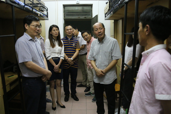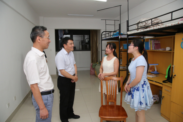 一行人还特别走访了我校建筑学专业的学生寝室。建筑学专业是我校今年新开设的一个专业,2016级学生也是该专业的第一届学生。领导们表示,你们作为建筑学专业的首届学生,要好好学习,立志成才,将来要为以后的学弟学妹做好老大哥的榜样。