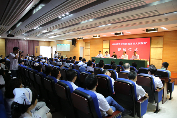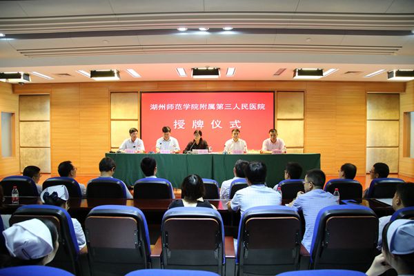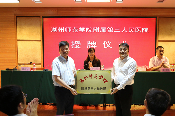 9月28日,我校附属第三人民医院授牌仪式在湖州市第三人民医院举行。湖州市副市长闵云,我校校长张立钦、党委副书记蒋云良,湖州市卫生和计划生育局副局长姜宝荣出席,市卫生和计划生育局、市第三人民医院相关领导,我校相关部门负责人及医学院、教师教育学院师生代表60多人参加授牌仪式。授牌仪式由蒋云良主持。