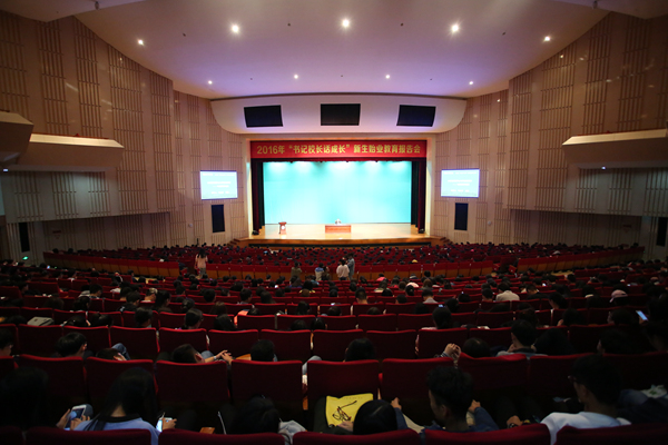 10月13日晚,“书记校长话成长”新生始业教育报告会第一讲在东校区大会堂拉开帷幕。校党委书记刘剑虹围绕新生在大学期间的成长与成才,作了一场精彩报告,来自教师教育学院、商学院、艺术学院和外国语学院的2016级新生聆听了报告。