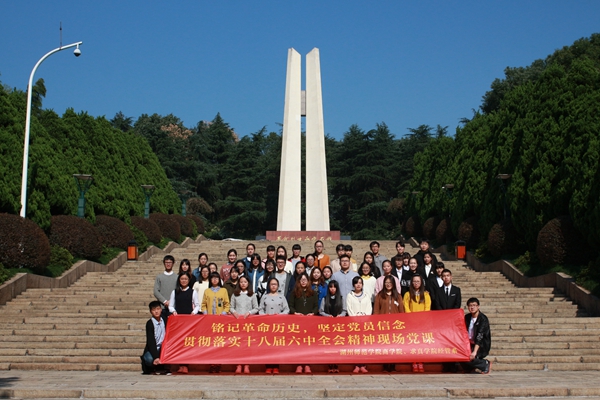 现场党课从2012年开展至今,走过南京、上海、嘉兴等多处红色纪念地,学院旨在通过现场党课的形式,让党员能从“课堂听”转到“实地学”“自己讲”,从而增强党课学习实效,进一步推进和落实“两学一做”要求,并且激励学生党员将党课学习到的精神和理念真正应用到今后的学习和生活中去,推动党员干部在服务人民群众中发挥积极作用,恪尽职守,求真务实,在日后生活中能积极发扬远征精神,争做新时代的弄潮儿。