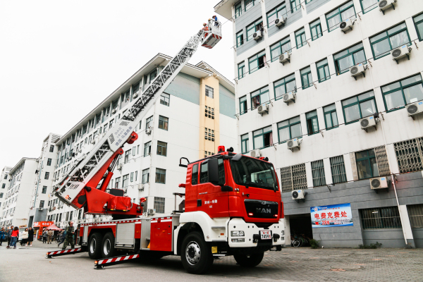 14点整,随着沈建民宣布“演练开始!”的指令,“火险”突然在28号公寓三楼内“蔓延”开来。随着数团浓烟渐渐弥漫在了东校区学生公寓区域,三千多名在宿舍区域的师生开始进行“火场逃离”。在短短的10多分钟内,参演师生全部安全有序地按照既定路线撤离到了就近避险场所,有30余名模拟被困学生通过云梯、拉梯等形式成功获救,2名模拟受伤人员被消防队员成功救出,近60名平安志愿者参与了模拟伤员院前应急救护。整个演练过程既快速紧张,又安全有序,有效地检验了我校应对校园火险的快速处置能力,提升了学校与119消防系统、110公安系统、120急救系统的协调配合、协同作战能力,增强了师生的安全防范意识,达到了预期效果,演练活动取得圆满成功。