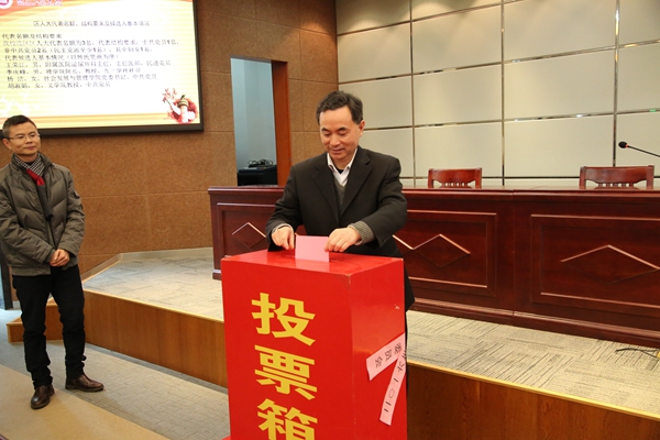 12月19日,吴兴区第四届人大代表我校选区投票选举大会分别在明达楼126中心投票站和19个分投票站举行。全校11038名选民参加了选举大会,中心投票站选举大会由朱礼敏主持。