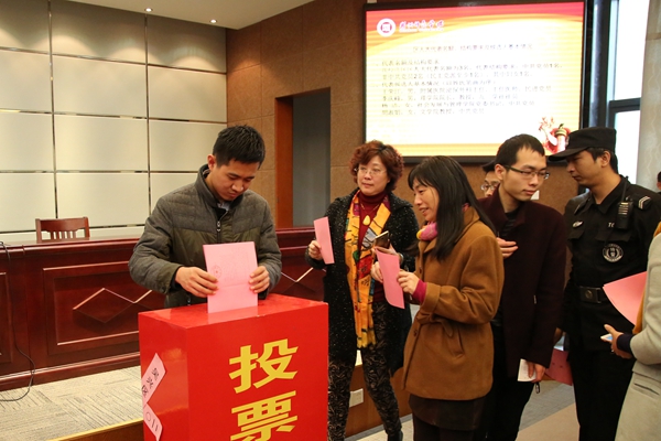 在中心投票站会场,朱礼敏宣读选举办法、代表候选人情况和有关选举事项的说明。选举工作有序进行,全体选民按照选举程序认真填写选票,按顺序投下了庄严的一票,未能到现场的选民也依照法律程序进行委托投票。会场氛围热烈、庄严、有序。其他19个分会场按照法定程序顺利完成了投票选举工作。