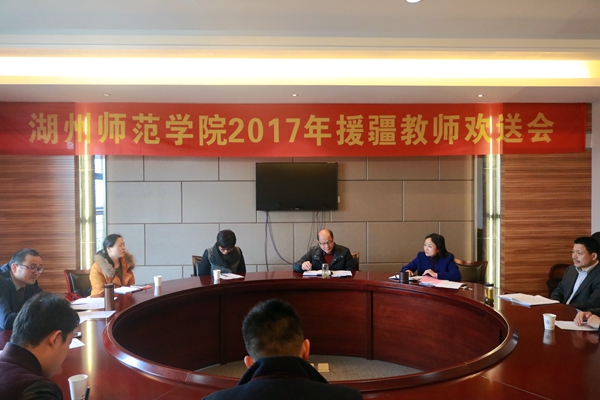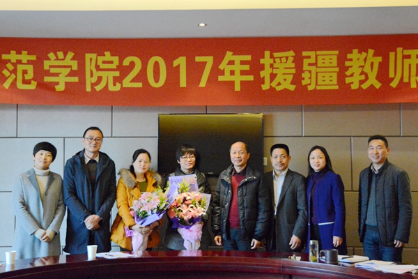 2017年2月19日上午,我校召开2017年援疆教师欢送会,欢送我校张蓓蓓、吴志霞两位教师赴新疆阿克苏地区开展支教工作。副校长陆永良出席,人事处、教师教育学院、医学院领导和援疆教师的同事代表参加了欢送会。
