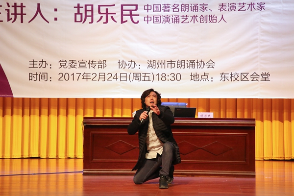 2月24日晚,中国著名朗诵家、表演艺术家、中国演诵艺术创始人、中国首届“夏青杯”朗诵大赛金奖获得者胡乐民先生做客胡瑗大讲堂,以“大艺之美在于真”为题,向师生们讲授并演绎了精彩纷呈的演诵艺术。