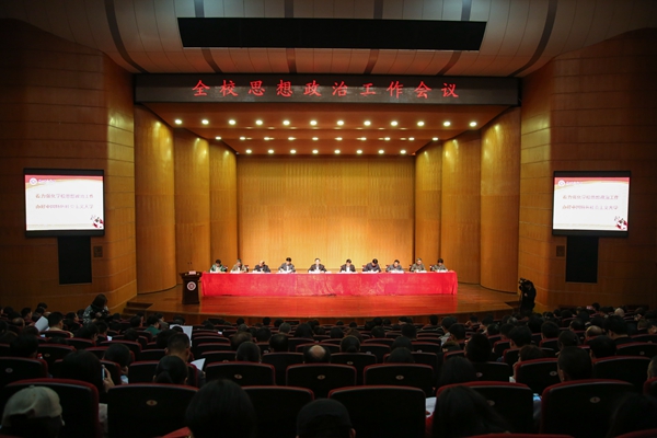 为深入贯彻落实全国全省高校思想政治工作会议精神,着力强化学校思想政治工作,办好中国特色社会主义大学,4月5日下午,学校在艺术学院音乐厅召开全校思想政治工作会议。校党政领导班子出席,各职能部门、直属单位、研究院(所)负责人,各二级学院(党委、总支)书记、副书记、院长、副院长,全体思想政治理论课教师、辅导员,班主任代表,各分工会主席、教工党支部书记,学科带头人,附属医院书记、院长以及校院两级主要学生骨干(主席、秘书长)等参加了会议。会议由校长张立钦主持。