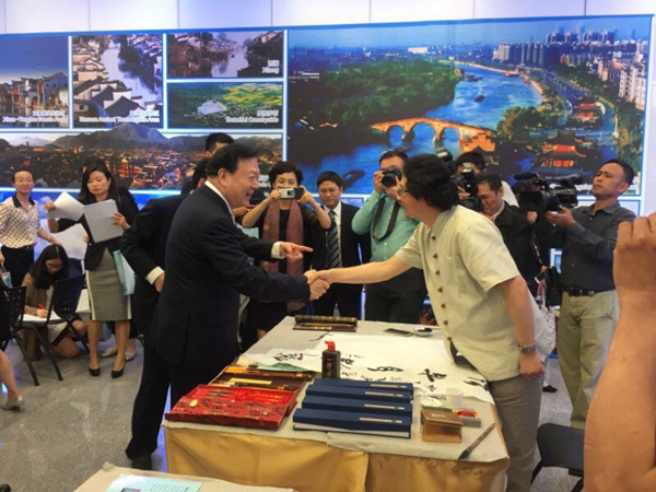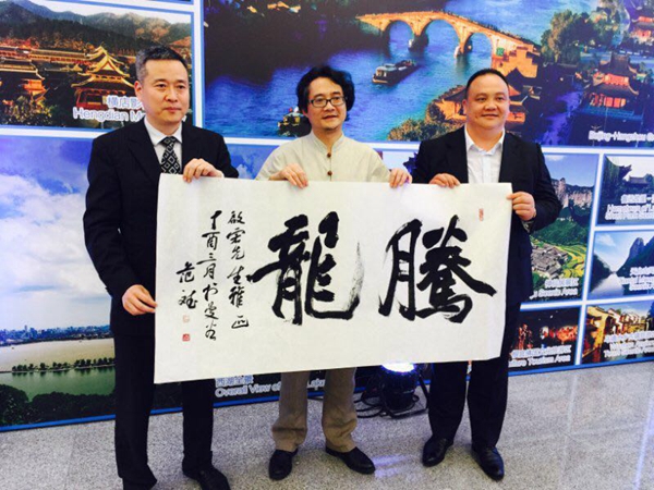 4月7日下午,“美丽中国·诗画浙江”泰国(曼谷)旅游推广周活动在曼谷中国文化中心成功启幕,中共浙江省委书记、省人大常委会主任夏宝龙,中华人民共和国驻泰王国大使宁赋魁及中泰外交、文化、旅游、商会等领导和浙江代表团参加启动仪式。我校艺术学院范斌教授作为我省表演中国书法的文化大使参加了活动。