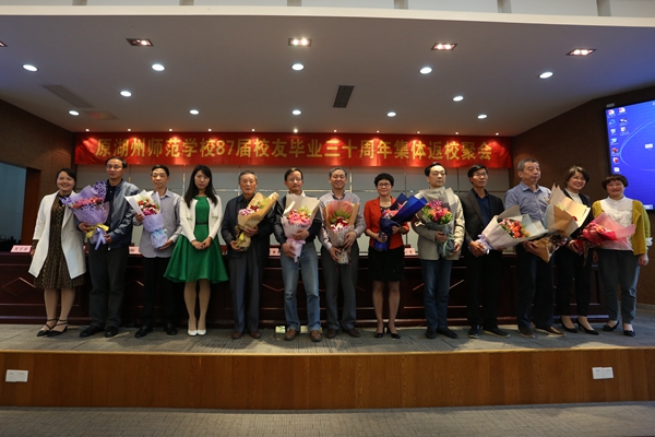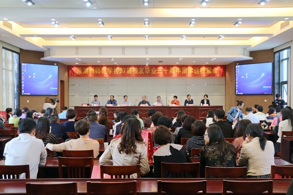 4月22日,原湖州师范学校87届(841班、842班、843班、844班)校友毕业三十周年集体返校活动在东校区明达楼126会议室举行。校纪委书记朱鸿和原湖州师范学校校长王秉忠出席,87届4个班级的班主任顾蔼慈、程愚、郑勇、何小青以及任课教师、校友联络办、教师教育学院有关负责人和校友逾120人参加了活动。