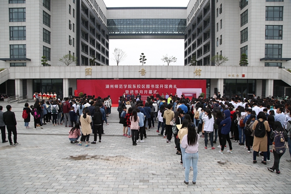 4月26日,我校东校区图书馆开馆典礼暨读书月活动开幕式在东校区图书馆大楼东侧前举行。党委副书记黄建平,党委委员、宣传部长杜宁出席,宁波大学图书馆、湖州市图书馆、科技处、人文社科处、招就处、校园建设处、团委、我校图书馆负责人、各二级学院副书记与学生代表等共同参与了本次活动。