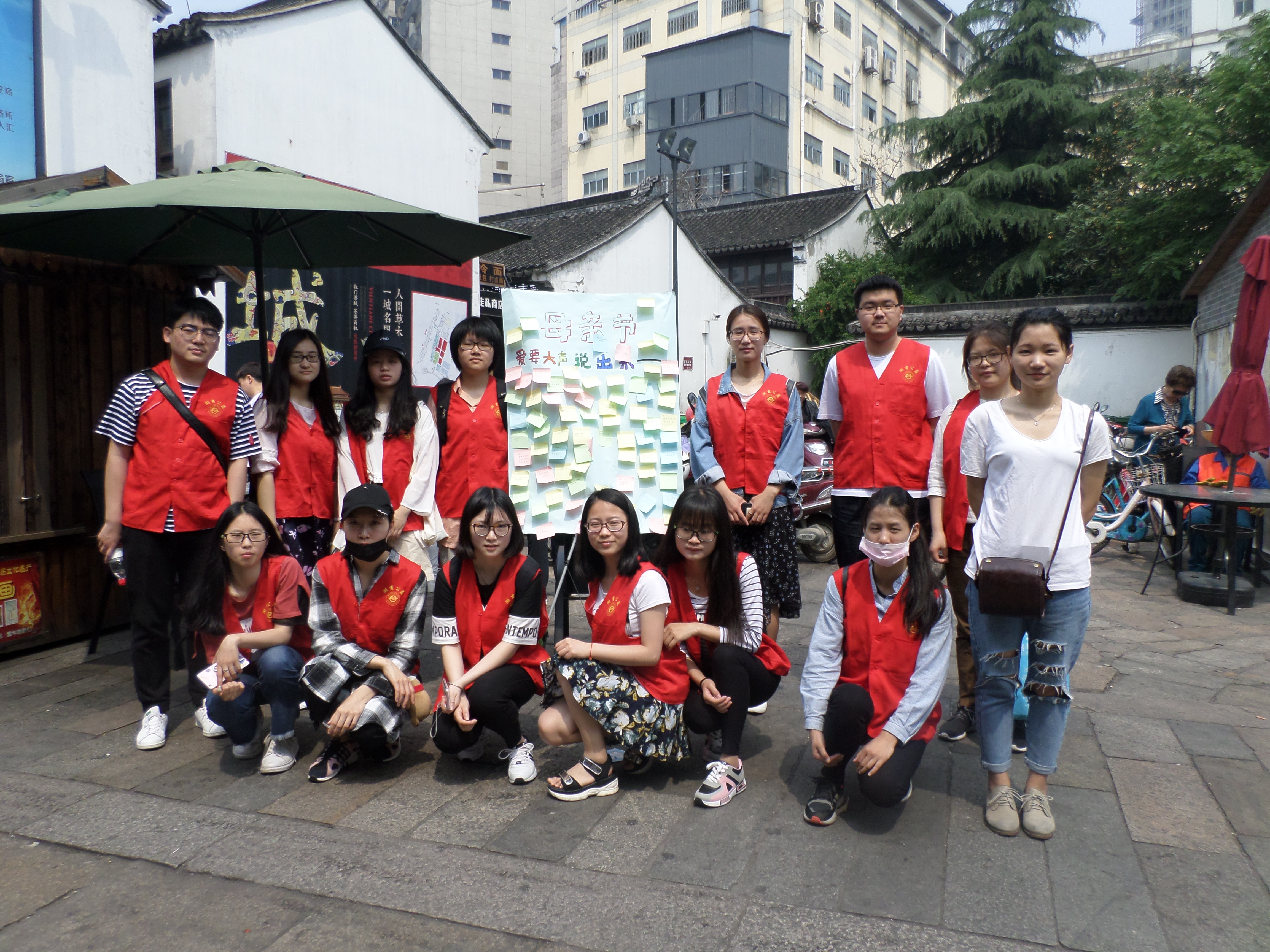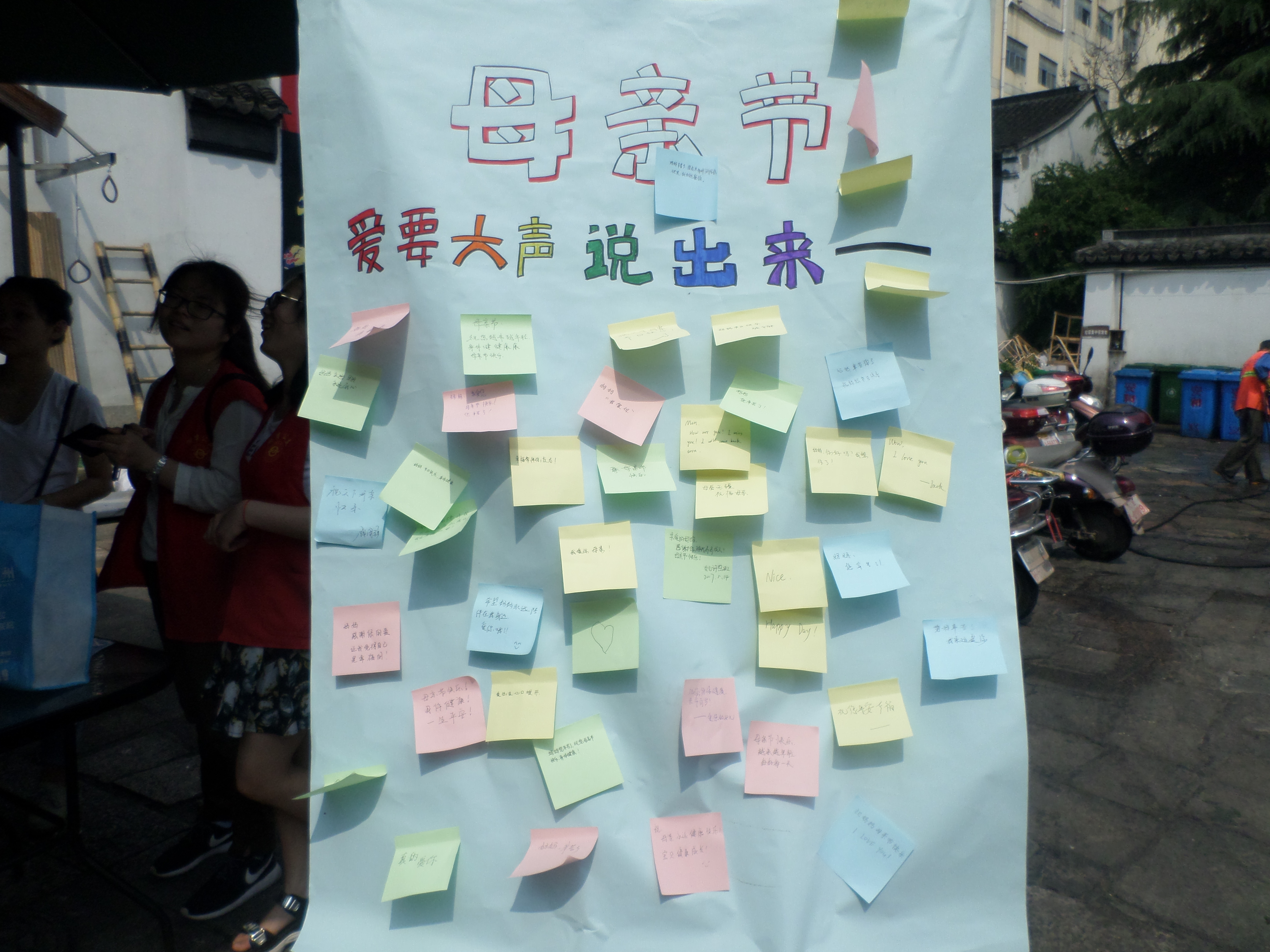 为广泛地弘扬母爱,并改善传统“爱在心头口难开”的情况,5月14日母亲节当天,湖州师范学院商学院学生走进湖州吴兴区衣裳街,开展“爱要大声说出来”志愿活动,鼓励更多市民对母亲说出爱,促进中华孝道的传递和发展。