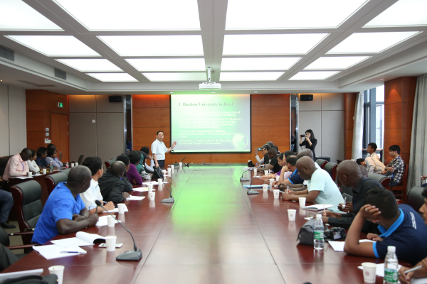 叶金云首先对培训班一行来访表示热烈欢迎,并重点介绍了我校的院系设置、人才培养、国际交流、学科建设等情况。他特别强调,湖州市是全国著名的淡水渔业基地,淡水养殖也是我校的优势学科之一,具有坚实的研究基础与良好的发展前景,希望通过此次交流,学员们能以我校淡水渔业学科为窗口,为我国与各发展中国家搭建农业(渔业)领域的互动平台,共同为建设 “一带一路”倡议作贡献。
