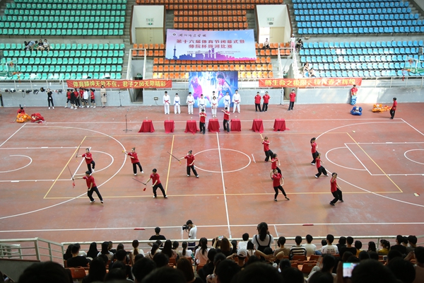 闭幕式上,还进行了“我武青春”舞狮、武术、太极表演和“师院杯”拔河比赛。据悉,第十六届“体育节”以“凝心、聚力、扬风采”为主题,历时8个月,共举办8项赛事873场体育比赛,最终决出六支冠军队和一支特别奖代表队,分别是:商学院学生足球队、生命科学学院学生篮球队、医学院学生排球队、医学院学生乒乓球队、社会发展与管理学院学生羽毛球队、理学院学生拔河队、教工足球特别奖代表队。充分展示了我校师生团结、拼搏的意志品质和友谊、互助的体育精神。