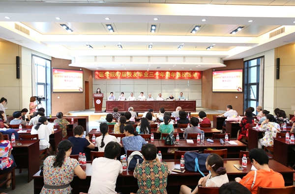 6月3日下午,我校举行医学院校友毕业三十周年集体返校活动。副校长马志和,原湖州职工中专卫生学校校长黄胜利、章自强,原湖州二院护士学校副校长赵格非,原湖州一院护士学校教务主任黄丽华等出席,三所学校三个班级的班主任及曾经任教的老师们、校友联络办和医学院有关负责人及校友130余人参加了活动。