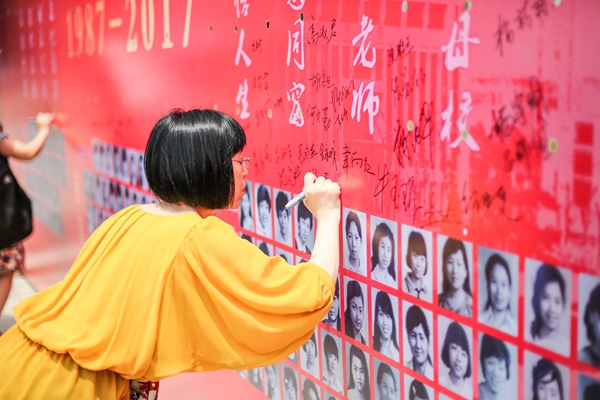 会上,校友们观看了学校十年发展纪实专题片,学校还为校友们颁发了毕业三十周年纪念证书。会后,校友们参观了东校区新校园,并在毕业三十年纪念喷绘墙上寻找自己当年求学的照片,签上自己的名字,与老师、同学合影留念。