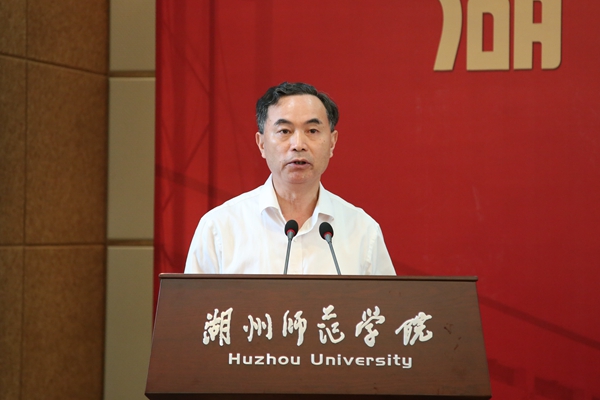 刘剑虹代表全体师生员工向莅临大会的各位领导和校友表示欢迎,向关心支持我校改革发展,特别是对我校校友会成立工作给予帮助指导的湖州市教育局、湖州市民政局表示感谢,向一直以来关注母校事业发展并为校友会工作付出辛勤汗水的校友们表示敬意,并简要介绍了学校发展情况。他表示,校友会成立暨校友代表大会的召开,翻开了我校校友工作的新篇章。学校的快速发展,既得益于原湖州师范专科学校、湖州师范学校、湖州卫生学校、湖州教师进修学院的深厚积淀,又与社会各界的关心支持息息相关,更与广大校友的无私帮助密不可分。学校为国家和社会输送了数以万计的优秀人才,历届校友遍及全国各地和海外。不论老骥伏枥还是蹒跚起步,不论事业有成还是壮志未酬,校友们都应守望相助、相互激励、共同分享。母校建立校友会这个平台,就是要让校友们能够在这个平台上凝聚、交流并携手共进;母校也可以通过校友会更加了解和关注校友们的发展,来见证、反思和促进我们的教育工作,并真正建成一个校友们永远的精神家园。学校将始终紧紧围绕习近平总书记时任浙江省委书记视察我校时提出的“因地制宜,体现特色,服务地方”的办学方针和建成“在国内有一定影响、一定水平、一定地位的湖州师范大学”的办学目标,高举“教师教育”和“服务湖州”旗帜,扎实推进有特色、高水平的区域性大学建设。希望广大校友一如既往地关注母校,在校友会的旗帜下,积极为母校的建设建言献策、添砖加瓦。