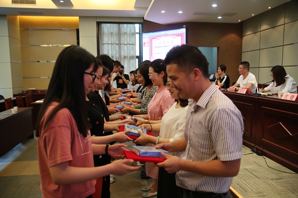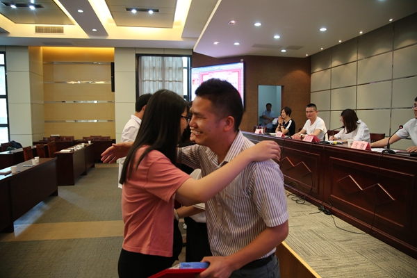 教师教育学院大二学生洪盈这次作为学生代表之一,在颁奖仪式上为获奖老师颁发证书与奖品。“很荣幸能为自己喜爱的辅导员颁奖,通过这种方式来表达对老师的感谢。”洪盈告诉说,她拥抱老师的时候,能感受到老师的满足与感动。