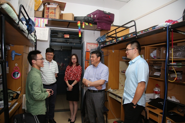 6月12日下午,校长张立钦、校党委副书记蒋云良率党委校长办公室、保卫处、招生就业处、学生处、团委、后勤服务总公司等部门负责人,走访了创新创业楼、学生处、团委、学生27幢寝室,看望工作人员和毕业学生,并对安全管理工作进行了检查。