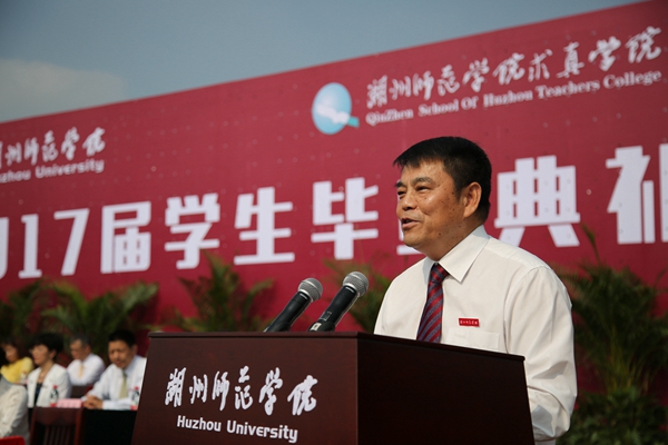 教师代表、浙江省高校优秀青年教师资助计划入选者、湖州市“1112人才工程”学术技术带头人培养人选、工学院潘国祥博士在发言中表示,大学毕业不是终点,而是一个新的起点,希望同学们准确定位,树立奋斗目标,做一位成功的人;诚信做人,踏实做事,做一位有责任感的人;适应社会,调整自己,做一位身心健康的人。