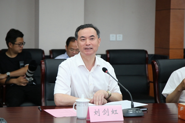 刘剑虹代表学校对市长一行到我校检查并指导工作表示感谢,并重点围绕人才培养、师资队伍建设、服务地方、学科建设、教育国际化等方面汇报了学校发展情况,指出我校下一阶段的重点工作是:深入贯彻落实2006年时任浙江省委书记习近平来校察时提出的“因地制宜,体现特色,服务地方”的办学方针和建成“在国内有一定影响、一定水平、一定地位的湖州师范大学”的目标要求,加快发展、内涵发展、赶超发展,全力争取硕士学位授予权单位的突破和“十三五”期间实现更名“湖州师范大学”,希望市委市政府加大财政支持力度和支持学校人才队伍建设。