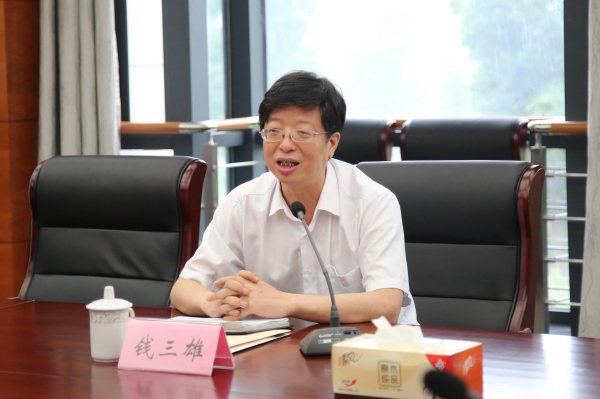 对学校今后的发展,钱三雄提出四点建议:一是聚人才、育英才,不断提升教学科研水平。一所大学的立身之本是自己有水平,学校要有高水平的教师,培养有能力的学生。在“聚人才”方面,学校要想办法留住人才,为教师提供良好的工作、科研和生活环境;在“育英才”方面,学校的校训“明体达用”就是要培养有用、可用的栋梁之才,大学四年对学生要有规矩、要严格,这对学生将来的一生都是非常受用的。二是做到帮百姓、帮企业,不断融入实现小康社会的征程中。一所大学除了教学、科研、学术等方面的评介外还需要社会评价,这就需要我们以社会需求为基础。帮百姓,特别要用科研技术帮扶湖州农民发家致富;帮企业解决技术难题,要对外开放,在开放过程中提升师生的意识和水平,要与更多的企业结成对子,达到燎原之势,这样才能达到高的社会评价。三是要有正气、有特色,不断提升学校品牌品位。学校要在培养学生上有特色、助推湖州经济发展上有特色、帮助湖州百姓上有特色、教学教学上有特色,但有正气更重要,学校校训“明体达用”就是正气,教师良好的师德师风就是正气,学生的优良学风就是正气,形成正气一定是规矩严格、敢抓敢管、旗帜鲜明,从而不断提升学校品牌与品位。四是要建平台、建管道,不断强化校地合作力度。校地合作需要双方努力,但关键是要有平台、有管道、有项目、有内容。同时,对学校提出的困难和建议,钱三雄表示湖州市政府会大力支持。