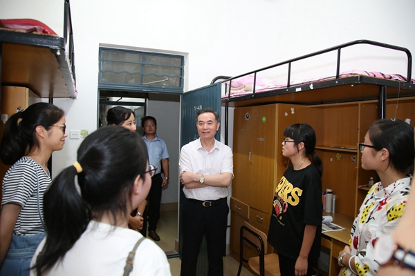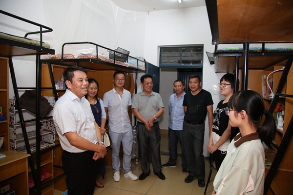 9月16日晚,校领导班子成员在相关职能部门、学院负责人陪同下,分组走访了2017级新生寝室,深入了解新生住宿情况,给他们带去关心和问候。